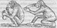 Рис. 6.4. Использование знаков амслен в общении шимпанзе Бруно и Буи между собой. Буи изображает знак «щекотать», возможно, для того, чтобы отвлечь Бруно от лакомства и самому его съесть (рисунок Т. Никитиной).