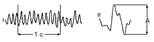 Рис 4. Измерение частоты (I) и амплитуды (II) на ЭЭГ. Определённый тип электрической активности, соответствующий тому или иному состоянию мозга, соответствует понятию «ритм». Для взрослого бодрствующего человека наиболее характерны α- (альфа) и β- (бета) ритмы. Основные ритмы ЭЭГ (или классические диапазоны ЭЭГ).