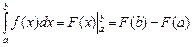 Если функция у = f (x) непрерывна на отрезке [ a, b ] и F (x) — одна из первообразных для f (x), то справедлива формула Ньютона-Лейбница