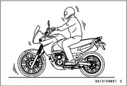 • Inspect the brake hose routing. + • If any brake hose routing is incorrect, route the brake hose Brake Operation Inspection • Inspect the operation of the front and rear brake by running the vehicle on the dry road. • If the brake operation is insufficiency, inspect the brake system.