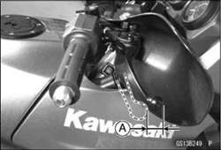 Brake Light Switch Operation Inspection • Turn on the ignition switch. • The brake light should go on when the brake lever is applied or after the tip of brake lever moves about 10 mm (0.39 in.) [A].