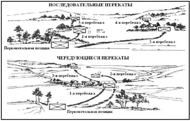 При осторожном передвижении перекатами расстояние между солдатами остает- ся примерно 20 м. Расстояние между отделениями варьируется. Отделение или взвод делятся на прикрывающую группу и группу, осуществляю- щую перекат. Группа, осуществляющая перекат, передвигается, в то время как прикрывающая группа занимает позицию, которая позволяет прикрыть огнем пе- редвижение первой группы. Расстояние каждого переката не должно превышать эффективной дальности поддержки прикрывающей группы. Расстояние переката зависит от местности, условий видимости и управления. Перед перекатом, командир дает подчиненным следующие инструкции: (a) Направление на противника, если оно известно. (b) Позиции прикрывающих групп. (c) Следующая позиция прикрытия. (d) Маршрут группы, осуществляющей перекат. (e) Что делать после того, как группа, осуществляющая перекат, достигнет сле- дующей позиции. (f) Как подразделения получат приказ на продолжение движения. Характерными чертами осторожного передвижения перекатами являются: (a) Максимальное управление. (b) Максимальное рассредоточение. (c) Минимальная скорость. (d) Максимальное охранение.