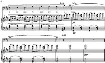 В данном окне нас сейчас особенно интересует опция «Staff size» (Размер стана). Она равна 7. Это довольно крупный размер. Установим размер на 6 – это будет, конечно, мелко, но позволит выполнить поставленную задачу. На что же так влияет «размер нотоносца»? - При изменении данной опции меняется не только размер самих нотоносцев, но и всех объектов, на них расположенных: и нот, и знаков, и текста. Таким образом, уменьшение масштаба объектов позволяет разместить их на меньшем числе страниц. Увеличение же масштаба позволяет повысить читаемость нот, особенно для людей со слабым зрением. Итак, мы уменьшили размер нотоносца до 6. Осмотрим партитуру. Расположение тактов и нотоносцев нисколько не изменилось, и причина следующая: к ним применено форматирование (разрывы систем и страниц и т.п.), о чем свидетельствуют синие обозначения над тактами. Чтобы снять форматирование, выделяем весь документ командой меню «Edit/Select - Select All» («Правка/Выделить - Выделить все») либо сочетанием клавиш Ctrl+A, и применяем команду меню «Layout/Format - Unlock Format» (Расположение/Формат – Разблокировать формат), либо нажимаем клавиши Ctrl+Shift+U. Затем, если системы и нотоносцы кое-где расположены неровно, выравниваем их, как описывалось выше. Конечный результат перед вами:
