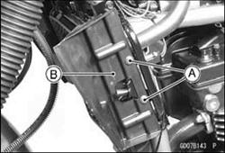 Radiator Removal • Drain the coolant. • Remove: Both Lower Fairing (see Lower Fairing Removal in the Frame chapter) Both Radiator Cover Screws [A] and Radiator Covers [B]