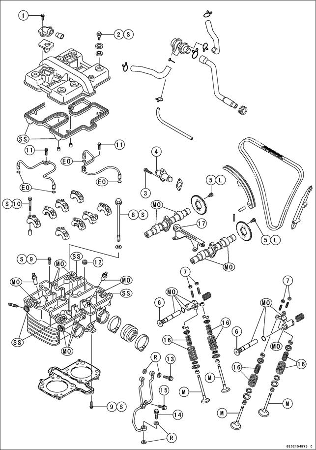 ENGINE TOP END Верхняя часть двигателя Table of Contents ENGINE TOP END 5-1 Взорванное Представление.......... Технические требования............... Специальные Инструменты.......... Чистая Пневматическая система. Вакуумное Удаление Клапана Выключателя... Вакуумная Установка Клапана Выключателя Воздушное Удаление Клапана Всасывания Воздушная Установка Клапана Всасывания Воздушный Осмотр Клапана Всасывания Чистый Шланг Пневматической системы Вакуумный Тест Клапана Выключателя Покрытие Головки цилиндра........ Удаление Покрытия Головки цилиндра.... Установка Покрытия Головки цилиндра. Натяжитель цепи распредвала Натяжитель цепи распредвала Установка................................ Распредвал, Цепь Распредвала