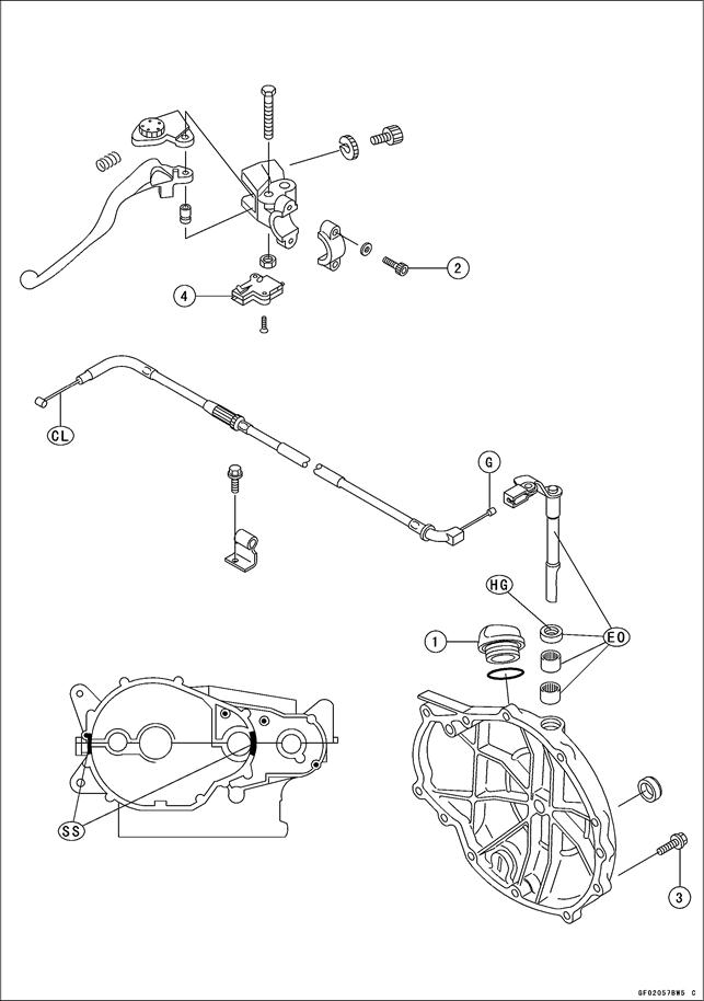 4. Starter Lockout Switch CL: Apply cable lubricant. EO: Apply engine oil. G: Apply grease. HG: Apply high temperature grease. SS: Apply silicone sealant.