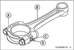 • Put the connecting rod big end caps on the rods and Torque - Connecting Rod Big End Cap Nuts: 36 N·m (3.7 kgf·m, 27 ft·lb) • Measure the bore diameter, and mark each connecting