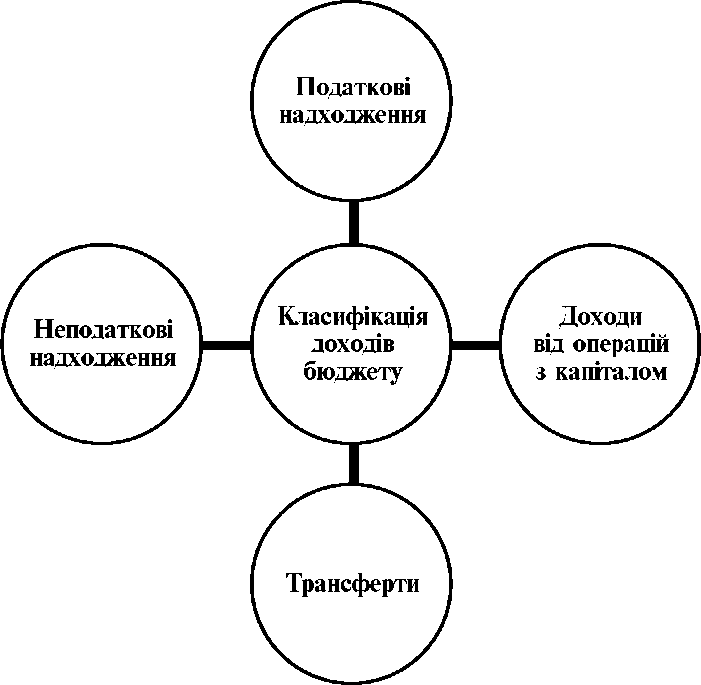 Серед переліку складових бюджетної класифікації у Бюджетному кодексі України першу позицію займає класифікація доходів бюджету (стаття 9 «Класифікація доходів бюджету»). Класифікація доходів бюджету означає їх групування відповідно до джерел формування, визначених законодавчими актами. Класифікація доходів бюджету призначена для чіткого розмежування доходів бюджетів різних рівнів за об'єктивними характерними ознаками з детальним їх розподілом на такі розділи (рис. 2.3):