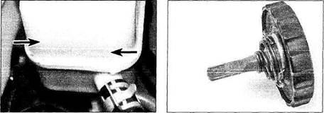 4When topping-up, use the specified type of fluid - do not overfill the reservoir. When the level is correct, securely refit the cap.