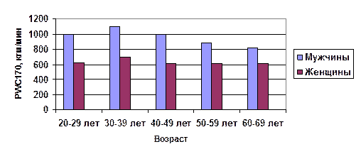Рис.9. Физическая работоспособность в зрелом и пожилом возрасте