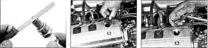 is lined with a rubber grommet to protect the porcelain insulator of the spark plug and to hold the plug while you insert it into the spark plug hole. You will also need a feeler gauge to check and adjust the spark plug gap and a torque wrench to tighten the new plugs to the specified torque (see illustration).