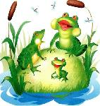 На болоте жили лягушки: лягушка-папа, лягушка-мама и маленький лягушонок. Лягушка-папа квакал воттак: ква-ква. Лягушка-мама квакала воттак: ква-ква-ква. Алягушонок пел песенки воттак: ква-ква; ква-ква-ква.