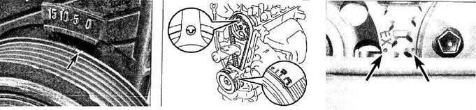 Align the crankshaft drivebelt pulley notch (arrowed) with the 0 (zero) on the timing cover