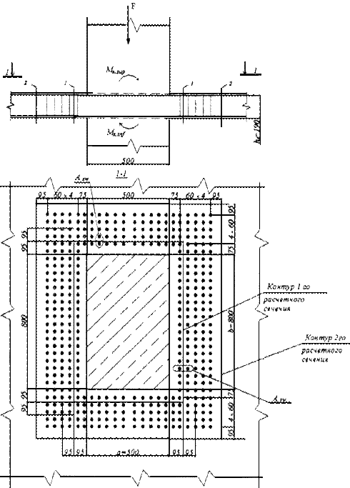 Проверяем прочность расчетного сечения с контуром на расстоянии