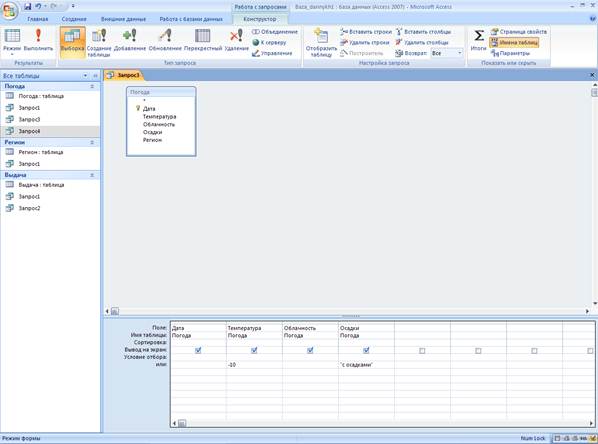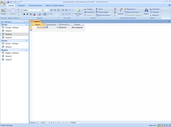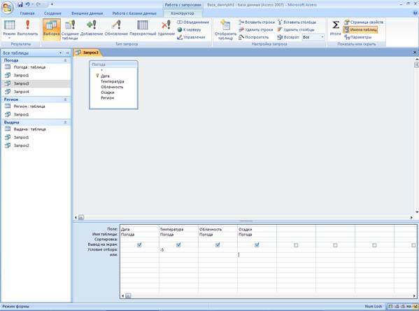 3.2. Вариант 8 ЗАДАНИЕ IV. MS ACCESS. Вариант 8 Запрос 1 даты, когда температура была в интервале от (0,-5) градусов