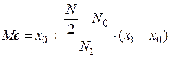 где х 0 – нижняя граница медианного интервала; х 1 – верхняя граница медианного интервала;