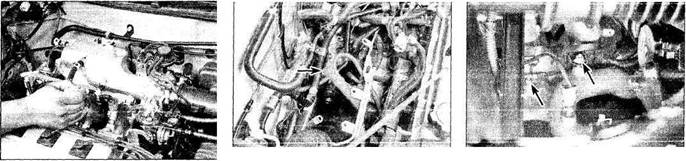 4 Disconnect the idle speed control valve electrical connector and the hoses from the air pipe at the rear of the manifold.