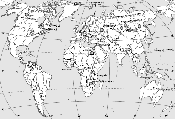 Рис. 20. Крупнейшие водохранилища мира (по А. Б. Авакяну) С некоторой степенью условности проблему опреснения можно подразделить на две субпроблемы – опреснения засоленных (солоноватых) речных и подземных вод и опреснения морских соленых вод. Опреснение засоленных речных вод имеет наибольшее значение для районов искусственного орошения, особенно в странах Азии, где оно особенно распространено. Соленость речных вод в этих районах постоянно возрастает, и для их отвода с орошенных полей приходится строить специальные каналы, что удорожает производство. В последнее время предпринимаются попытки опреснения хотя бы части этих сбросовых вод. То же относится и к опреснению подземных вод, которые откачивают на поверхность при добыче полезных ископаемых, в особенности угля. Но еще большее значение имеет опреснение морских (океанских) вод. Первые установки по опреснению морской воды появились еще в конце Х1Х – начале XX в. Примерами такого рода могут служить солнечный опреснитель в пустыне Атакама (Чили), опреснители на Каспийском море в районах Актау и Баку. Однако строительство таких установок в промышленных масштабах началось уже в 30-х гг. XX в. Впрочем, и в этот период мощности опреснительных установок были еще сравнительно небольшими, а распространение их оставалось довольно ограниченным. Только с наступлением эпохи НТР, в середине 1960-х гг., такое строительство приобрело по-настоящему широкий размах. Уже в 1970 г. во всем мире эксплуатировалось 800 только крупных опреснительных установок с суммарной производительностью 1,25 млн м3/сутки. В 1980 г. опресняли уже 7 млн м6/сутки. В 1992 г. 7,5 тыс. опреснительных установок производили 17,5 млн м6/сутки. В 2000 г. суммарное количество опресненной воды должно было достигнуть, по прогнозам, 25–30 млн м3/сутки. Одновременно растет и мощность отдельных опреснительных установок. До 1960-х гг. строили преимущественно небольшие установки производительностью до 3 тыс. м3/сутки, но затем появились установки производительностью в 20–25 и даже 50– 100 тыс. м3/сутки. Для опреснения морской воды все чаще стали применять энергию АЭС. Соответственно и стоимость опреснения постепенно снижалась, и ныне этот процесс стал уже вполне экономичным.