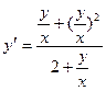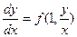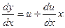 По условию т.е. однородная функция нулевого измерения зависит только от отношения аргументов. Уравнение (1) в этом случае примет вид Сделаем подстановку: Тогда будем иметь: Подставляя это выражение производной в уравнение (2), получим: Это – уравнение с разделяющимися переменными: после разделения переменных: Интегрируя, найдем: Подставляя после интегрирования вместо u отношение у/х, получим интеграл уравнения (2).