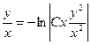 Найти общий интеграл дифференциального уравнения Решение. Разрешим уравнение относительно производной: Поделив числитель и знаменатель правой части уравнения на Таким образом, Введем теперь новую функцию разделим переменные: Интегрируя это уравнение, получим: откуда, подставляя u=х/у, получим общий интеграл исходного уравнения: Получить у как явную функцию от х, записанную с помощью элементарных функций, в данном случае невозможно. Поэтому общее решение оставляем в виде функции, заданной неявно.