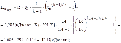 Задача 4.3. Определить мощность турбины турбокомпрессора наддува четырёхтактного дизеля, если коэффициент избытка воздуха a=1,4, параметры воздуха на входе в компрессор равны: ро=1,05 бар, tо=250С, а давление воздуха на выходе из компрессора рк=1,7 бар. При этом расход выпускных газов составляет GГ=970 кг/ч. Эффективные КПД турбины и компрессора составляют соответственно hТ=73%, hк=69%. Дизель использует топливо следующего состава: С-0,875; Н-0,121; О-0,004. (Ответ: 18,2 кВт)
