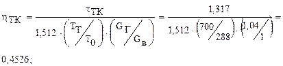 Решение. Известно, что для случая турбокомпрессора мощности турбины и компрессора равны, т. е. РТ=Рк. Мощность компрессора определим по соотношению