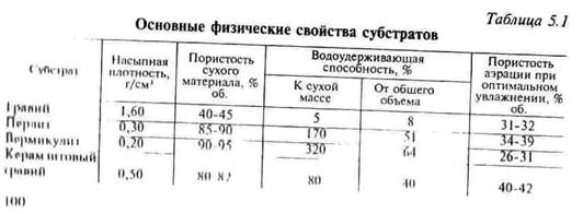- Повышенное содержание кальция в растворе вызывает осаждение фосфатов. Таким образом, субстрат, содержащий СаСО3, не способствует нормальному росту растений. Во-вторых, субстрат должен обладать достаточной водоудерживающей способностью и хорошей аэрацией. Эти его свойства в значительной степени зависят от размера частиц. С их увеличением резко снижается водоудерживающая способность субстрата и повышается его пористость. Такие субстраты. как измельченные вермикулит, перлит и керамзит, обладают высокой водоудерживающей способностью, а гравий и гранитный щебень — низкой. В- третьих, субстрат должен быть достаточно прочным. Этим требованиям отвечает ряд материалов — гранитная щебенка, гравий, песок, керамзит, пемза и др., которые и используются как субстраты при агрегатопонике (табл. 5.1).