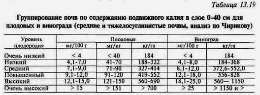 Фосфор. В почве он содержится в органических и минеральных соединениях. Его количество зависит от механического состава почвы, количествa глинистых частиц, количества гумуса. Минеральный фосфор почвы представлен минералами почвообразующих пород и солями фосфорной кислоты. Онb являются водорастворимыми солями: фосфаты кальция и магния, фосфорно -кислый калий, натрий, аммоний и др., двузамещенный фосфат магния, кальция, трехзамещенный фосфат кальция, железа, аммония. Для овощных культур, интенсивных насаждений плодовых и винограда степень обеспеченности почв подвижными формами фосфора представлена в табл. 12.16 и 12.17.
