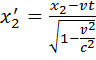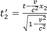 Пусть в неподвижной системе отсчета К в точках с координатами x1 и x2 одновременно (t1=t2=t) происходят два события. В системе К / этим событиям будут соответствовать координаты: