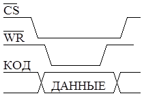 Рис. 7.11 земли выполнить отдельными печатными проводниками с одной точкой соединения на источнике. При совместной работе ЦАП с микроконтроллерами обычно используют согласованную шину данных. Вывод кода в ЦАП производится байтами. Примером построения 12-разрядного ЦАП с 8-разрядным входом является микросхема AD7248. Ее внутренняя структура представлена на рис. 7.10. Преобразователь состоит из 12-разрядного ЦАП с выходом по напряжению, внутреннего фиксированного источника опорного напряжения, 12-разрядного запоминающего регистра, непосредственно подключенного к ЦАП, и двух вспомогательных регистров для предварительного хранения данных. Микроконтроллер в процессе работы должен сначала последовательно записать данные в промежуточные регистры. Двенадцатиразрядный код разбит на 8 младших и 4 старших бита. После записи информации в промежуточные регистры на их выходах формируется 12-разрядный код, который специальным сигналом LDAC записывается во внутренний регистр, после чего ЦАП формирует выходное напряжение. Для микроконтроллера промежуточные регистры представляются внешними устройствами, имеющими отдельные выборки. Диаграмма записи информации в ЦАП представлена на рис. 7.11.