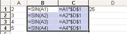 Этот способ применяется для быстрого заполнения диапазона ячеек. В первую ячейку диапазона вводится соответствующее выражение и выполняется щелчок левой кнопкой мыши по флажку После этого курсор мыши наводится на маркер заполнения, находящийся в правом нижнем углу активной ячейки (маркер преобразуется в знак +). Далее, удерживая нажатой левую кнопку мыши, следует выделить требуемый диапазон ячеек, который автоматически заполняется соответствующими формулами. При этом Ехсе1 изменяет относительные адреса ячеек и оставляет без изменения абсолютные.