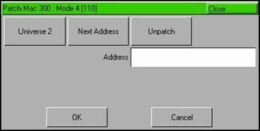Переместите курсор в ячейку DMX требуемого прибора и нажмите кнопку ENTER. На экране монитора отобразится всплывающее окно привязки прибора к адресу, например: