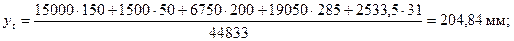 Определяем высоту сжатой зоны по формуле (4.44), принимая усредненную ширину ребра 85 мм и площадь сжатых свесов равную Асв = (b'f - b) h'f = 635·30 = 19050 мм2, и рабочую высоту ho =300 - 31 = 269 мм: