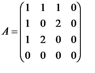 Заметим, что V = {v1, v2, v3, v4} и строки и столбцы матрицы А соответствуют порядку следования элементов множества V. Две особенности данного графа могут быть сразу отмечены. Во-первых, на главной диагонали имеется только один элемент аii = 1, отличный от нуля, поэтому граф имеет только одну петлю при вершине v1. Во-вторых, последняя строка (столбец) состоит только из нулей, то есть вершина v4является изолированной, она не связана ни с одной другой вершиной. Валентность вершин может быть легко определена на основе матрицы смежности: