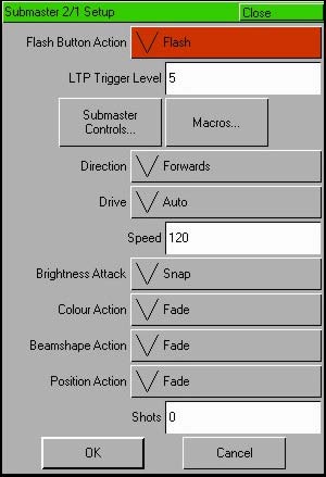 Включение макросов из субмастеров Этот параметр в окне Submaster Setup позволяет Вам указать определенный пользователем макрос, который должен быть включен при выведении субмастера.