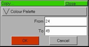 Используйте МФК или внешнюю клавиатуру для ввода требуемого имени палитры, затем нажмите кнопку [OK] для завершения операции. Отобразите соответствующее палитре окно на мониторе. Выберите запрограммированную палитру, которую необходимо скопировать. Нажмите кнопку COPY. На мониторе отобразится окно Copy: