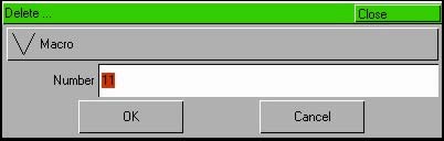 Примечание – запуск макросов приборов Для запуска одного из автоматических макросов приборов (сброс, включение лампы, выключение лампы), в первую очередь, выберите прибор до запуска макроса, как это описано выше. Отобразите окно Macro на мониторе. Выберите запрограммированный макрос, который необходимо удалить. Нажмите кнопку DELETE. На мониторе отобразится окно Delete: