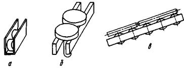 Рис. 29. Виды лотков: а - скат; б - склиз; в – роликовый