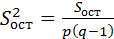 Здесь число степеней свободы по сравнению с pq уменьшено на p, т.к. в каждой группе за счет групповой средней число степеней свободы уменьшается на единицу. Если нулевая гипотеза о равенстве средних справедлива, то все эти дисперсии являются несмещенными оценками генеральной дисперсии. Например, учитывая, что объем выборки