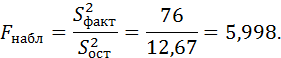 Теперь сравним факторную и остаточную дисперсии по критерию F: