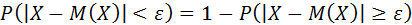 Поставим задачу: Оценить вероятность того, что отклонение случайной величины Х от её математического ожидания М(Х) не превышает по абсолютной величине число ε > 0. Если ε достаточно мало, то мы оценим, таким образом, вероятность того, что Х примет значения, достаточно близкие к своему математическому ожиданию. Неравенство Чебышёва: Вероятность того, что отклонение случайной величины Х от её математического ожидания по абсолютной величине меньше положительного числа ε, не меньше, чем величина 1