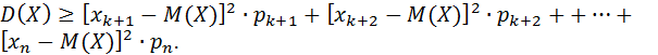 Все слагаемые этой суммы неотрицательны. Отбросим те слагаемые, у которых Условимся считать, для определённости, что отброшено k первых слагаемых. Не нарушая общности, можно считать, что в таблице распределения возможные значения занумерованы именно в таком порядке. Таким образом, получаем неравенство: