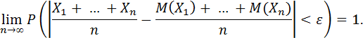 Теорема Чебышёва утверждает, что если рассматривается достаточно большое число независимых случайных величин, имеющих равномерно ограниченные дисперсии, то почти достоверным можно считать событие, состоящее в том, что отклонение среднего арифметического случайных величин от среднего арифметического их математических ожиданий будет по абсолютной величине сколь угодно малым. Следствие из теоремы Чебышёва (частный случай теоремы): Если