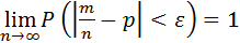 Заметим, что теорема Чебышёва справедлива как для дискретных, так и для непрерывных случайных величин. Сущность теоремы Чебышёва: Среднее арифметическое достаточно большого числа независимых случайных величин (дисперсии которых равномерно ограничены) утрачивает характер случайной величины. Значение теоремы Чебышёва для практики: Теорема Чебышёваустанавливает связь между теорией вероятностей, которая рассматривает средние характеристики всего множества значений случайной величины, и математической статистикой, оперирующей ограниченным множеством значений этой величины. Она показывает, что при достаточно большом числе измерений некоторой случайной величины среднее арифметическое значение этих измерений приближаются к математическому ожиданию. Теперь познакомимся с теоремой Бернулли. Теорема Бернулли была опубликована в 1713 году, получила название «закона больших чисел» и положила начало теории вероятностей как науке. Доказательство Бернулли было сложным. Простое доказательство было дано П.Л. Чебышёвым в 1846 году. Теорема Бернулли: Если в каждом из n независимых испытаний вероятность р появления события А постоянна, то как угодно близка к единице вероятность того, что отклонение относительной частоты от вероятности р по абсолютной величине будет сколько угодно малым, если число испытаний достаточно велико. Другими словами, если ε >0 – сколько угодно мало, то, при соблюдении условий теоремы, имеет место равенство: