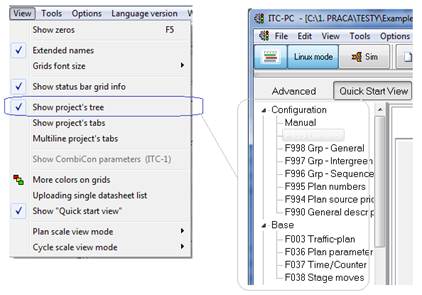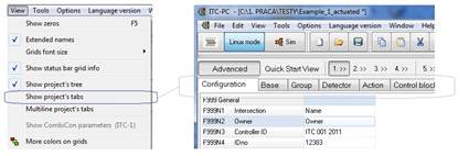 Different options allow you to customize the main ITC-PC window. It is possible to show/hide the project tree, project tabs or multiply tabs.