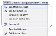 You can also click on the (Send this datasheet, Send all data or Receive all data) button on the main tool bar.