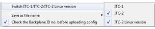 The ITC-PC software is compatible with all previous ITC controller versions. It is important to switch the ITC-PC software to the specific mode before uploading/downloading data to/from the different ITC controller versions. For the ITC-2 Linux version always make sure that the Linux mode is enabled.