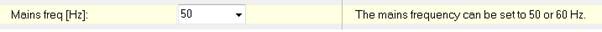 The mains frequency can be set to 50 or 60 Hz.