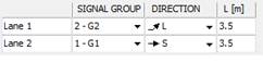 Define the directions and the signal group associations. 3,5 m is a default lane width and can be changed.