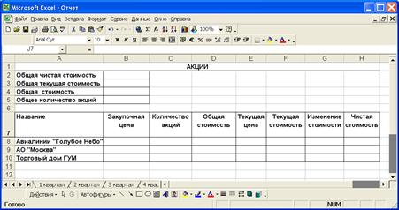 Рис. 14. Вид окна Буфер обмена Задание 3. На рабочих листах с 1-го по 4 квартал файла Отчет одновременно введите информацию, приведенную на рисунке.
